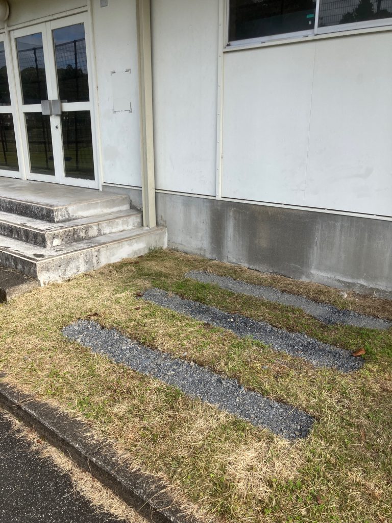 当社の見積もりはホームセンターより高いでしょう。でもこの基礎ブロックの下の土を浚い砕石敷いて転圧してますから、事故は起きません。