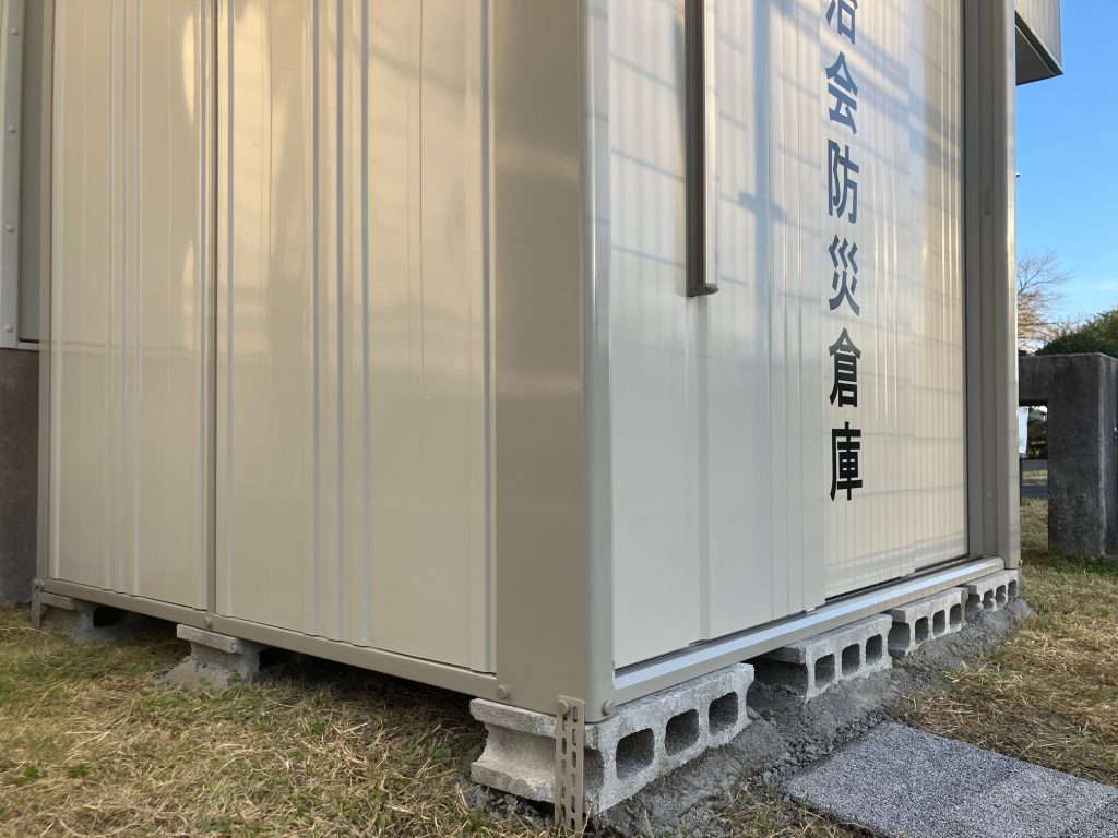 その避難所の脇に防災グッツを納める「防災倉庫」当社で作りました。
