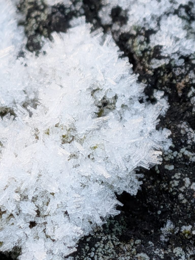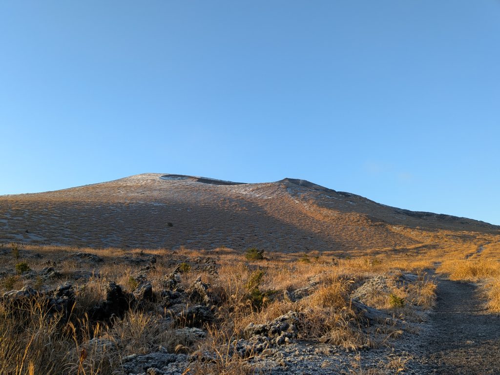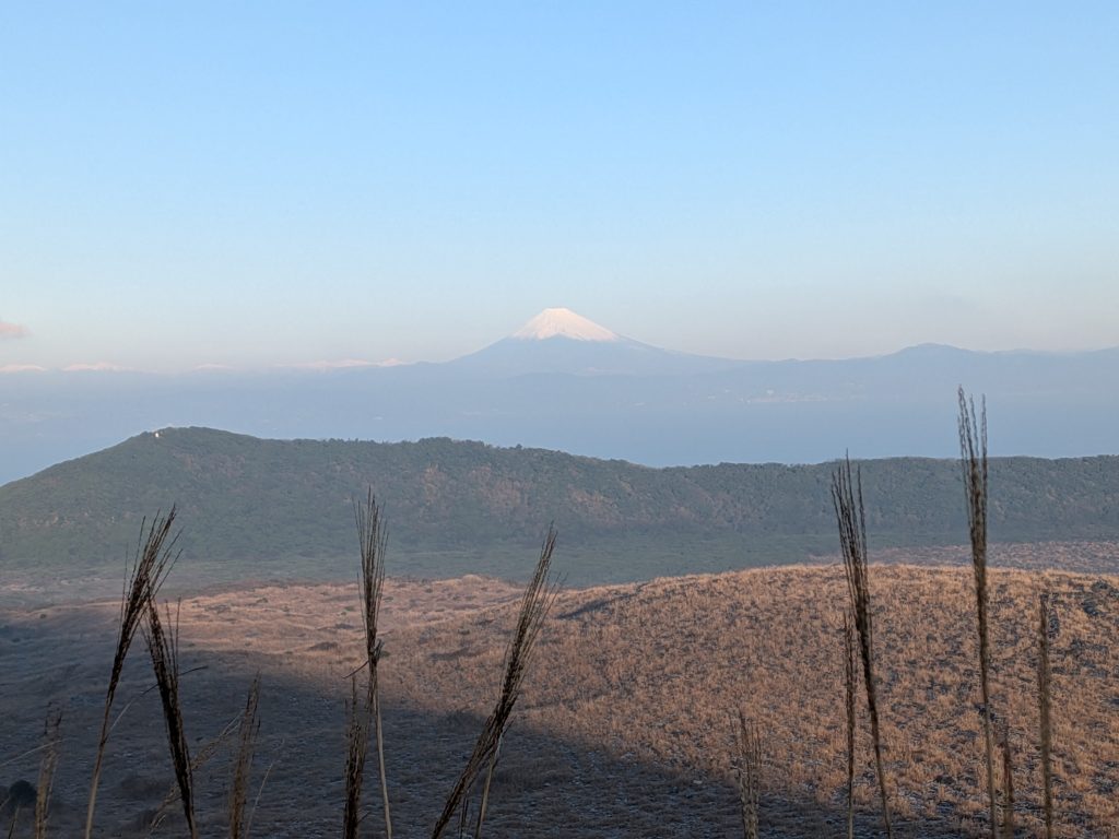 大島も関東もそんなに気温は変わらない、と防寒対策は予定通りだったが、朝は霧氷に覆われていて山頂は真っ白だったのでちょっと焦った。