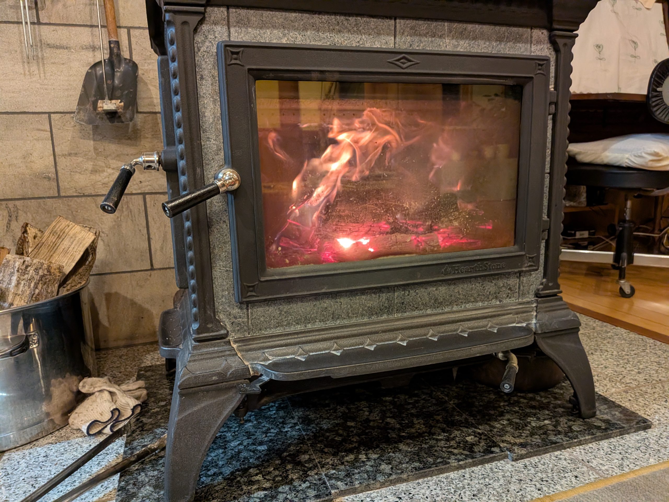 この処多忙で、気持ちに余裕がないこともあり、ペレットストーブを焚きっぱなしで寝る生活。しばらく薪ストーブに触れてはいなかったのだけど、それでは一発奮起して火を入れてみましょう。2台焚きは今季最後になるかもしれないので。