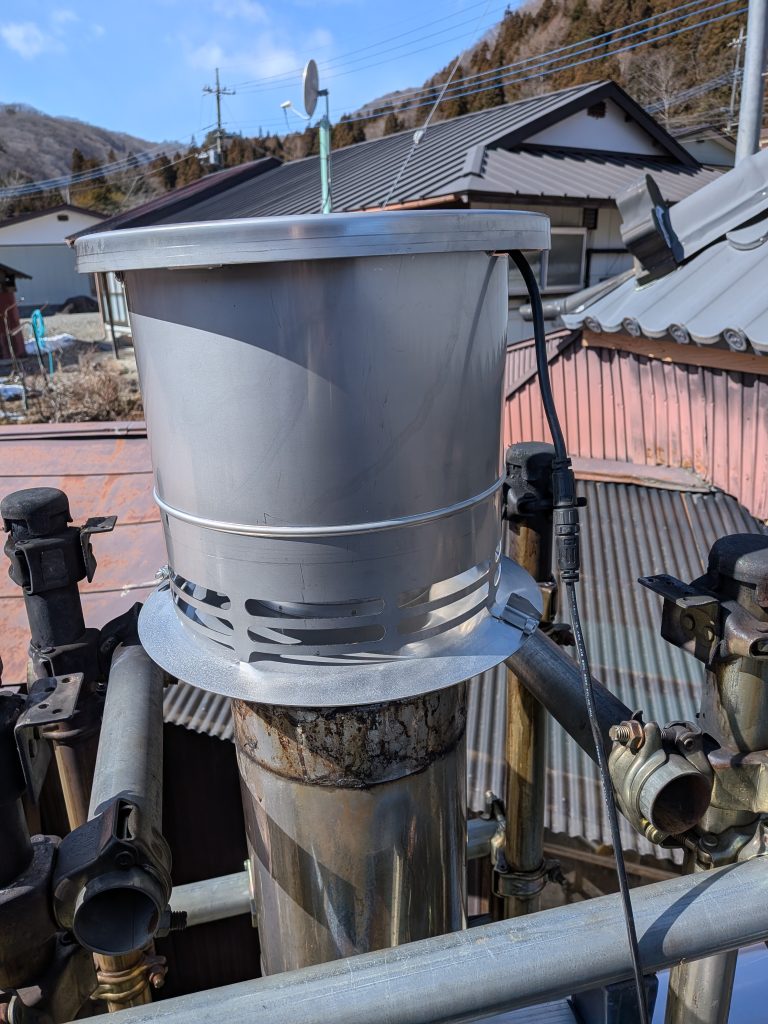 チムニーファンとは、煙突の先端に付ける電動ファンで、どうしても煙突のドラフトが期待できないレイアウトの場合の助け舟として当社では複数採用している。