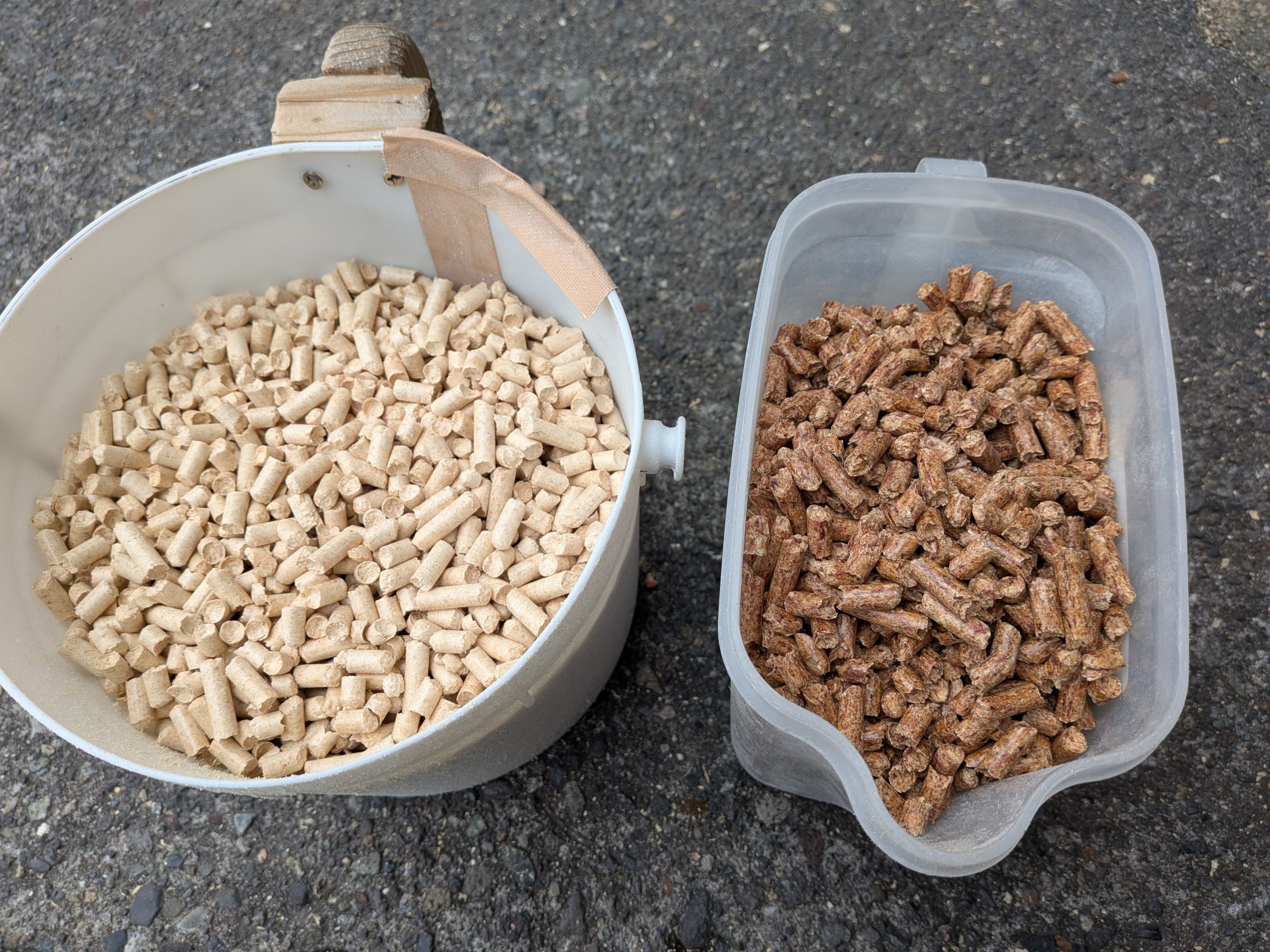 ↑トップは当社が扱っている2種類のペレット ホワイトと全木 見れば識別は簡単。