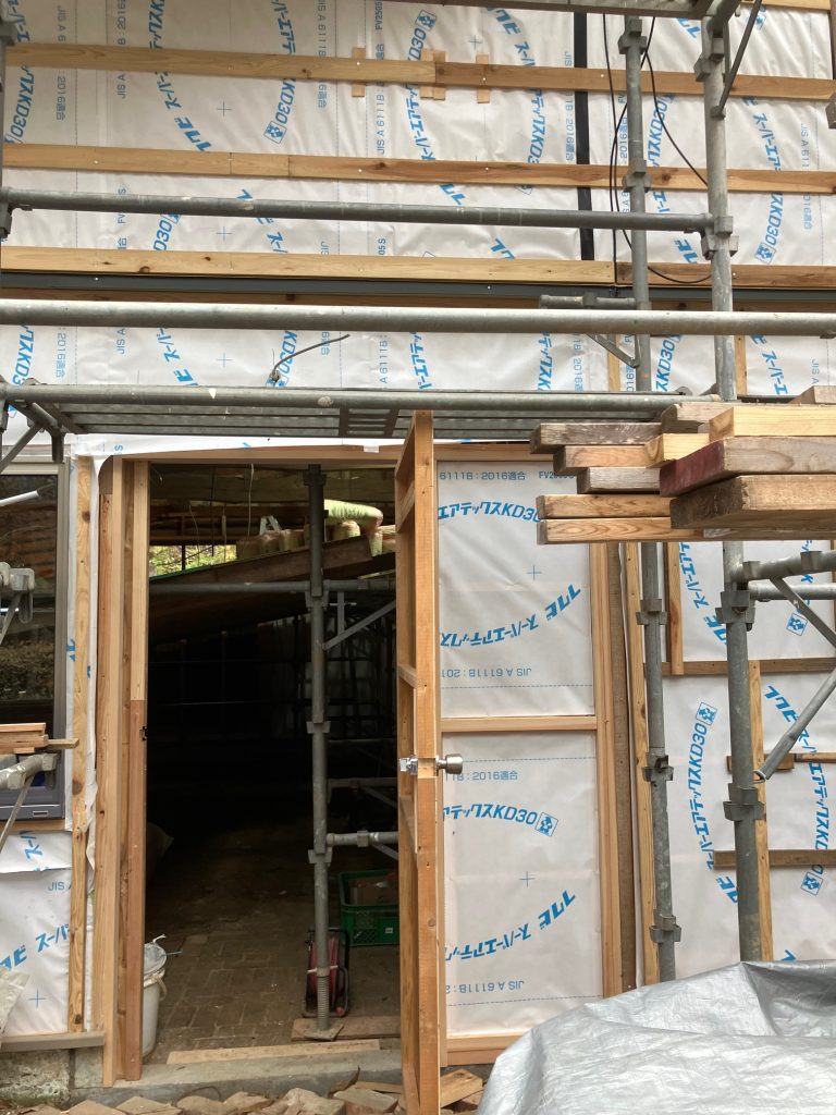 で前回は「やるかどうかわからない」と言っていた作業場の壁内部の断熱材も追加されたみたい。サッシもペアガラスになっていた。