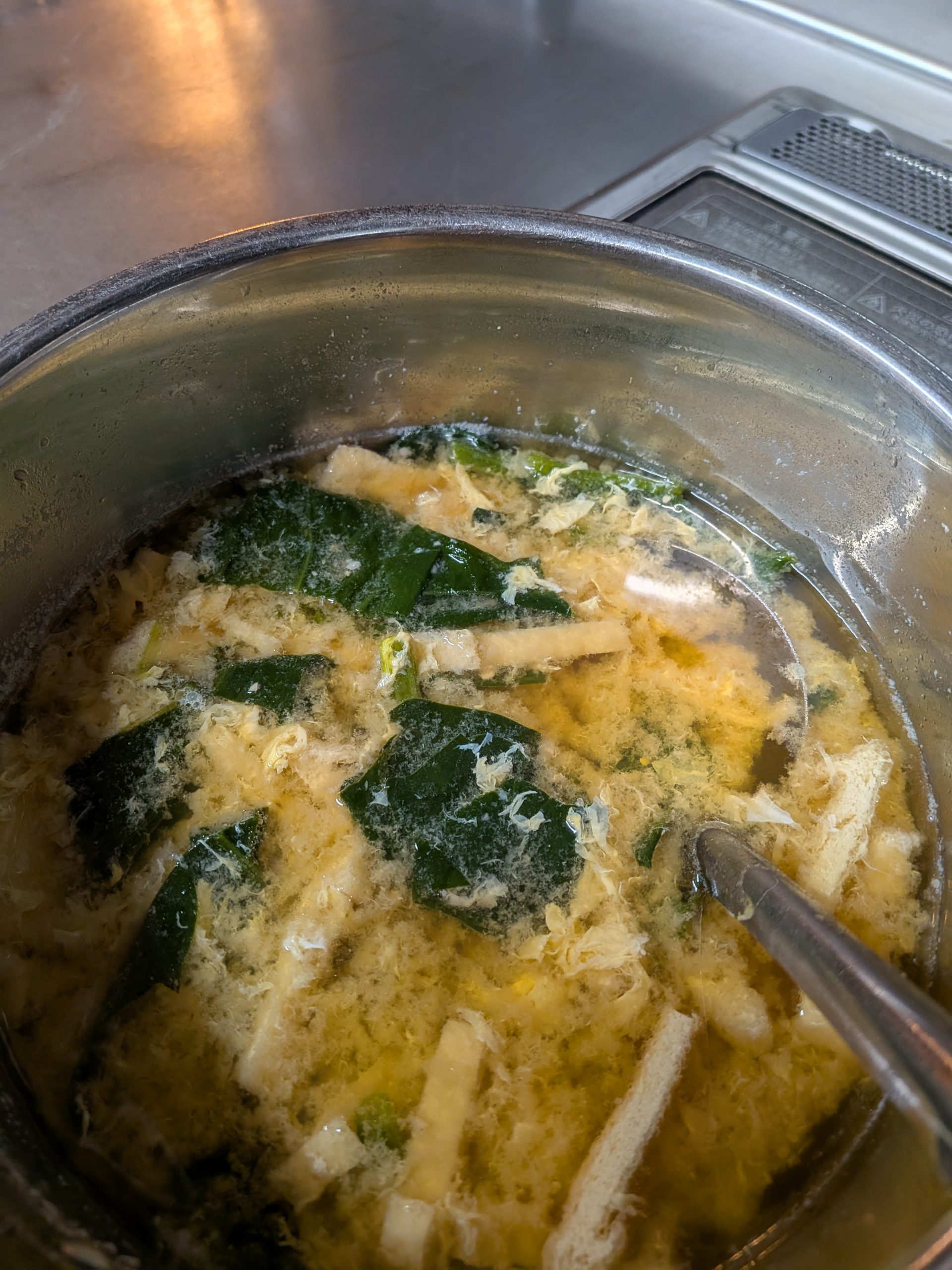 そして今夜は ほうれん草と油揚げ・溶き卵