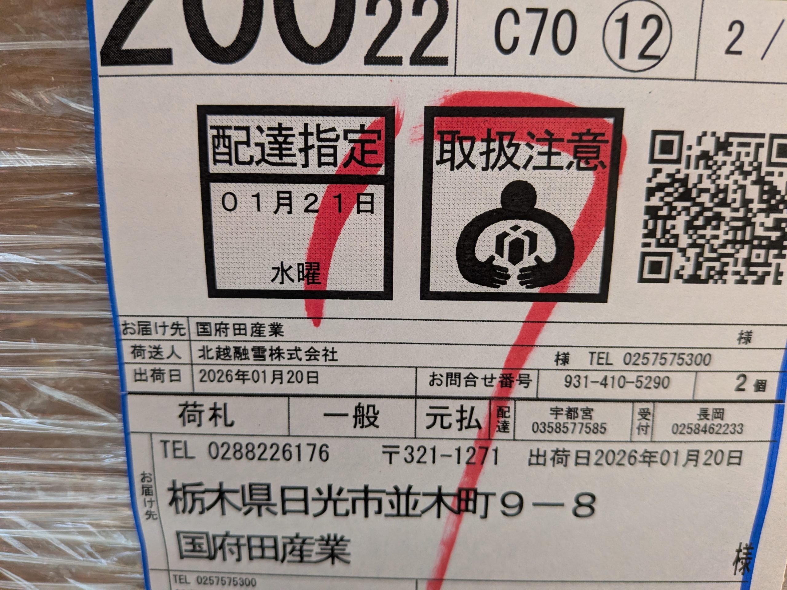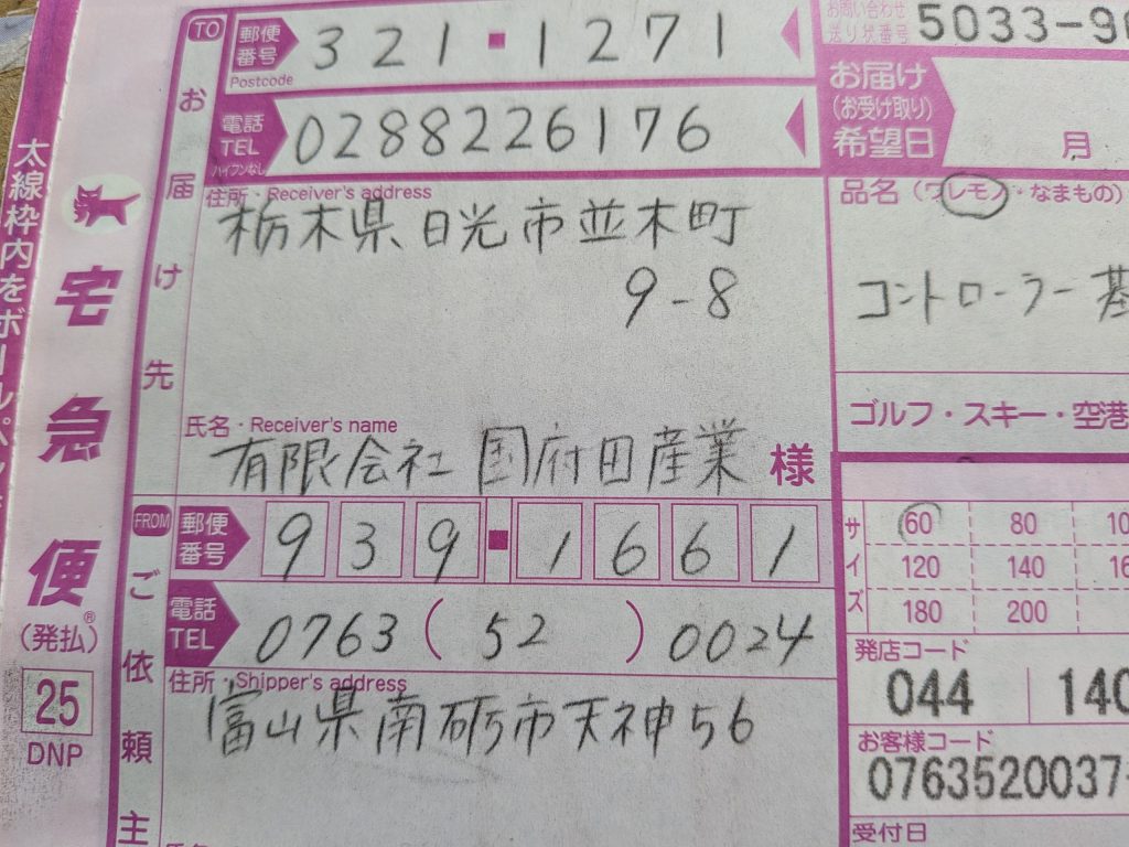 今日富山から部品が