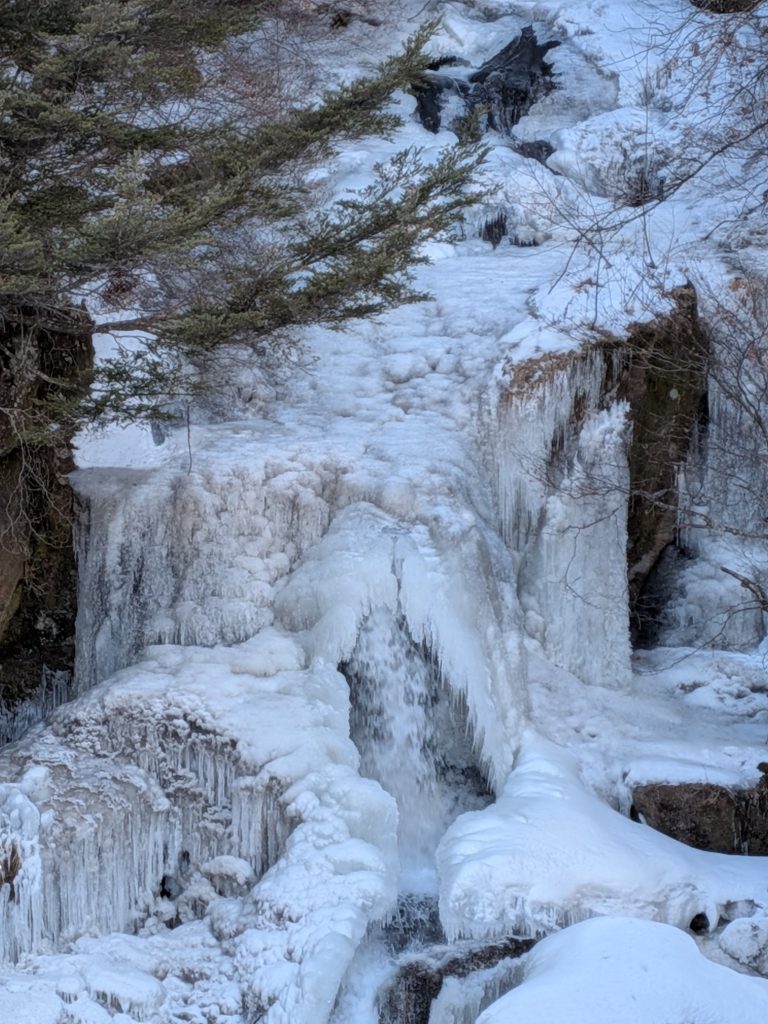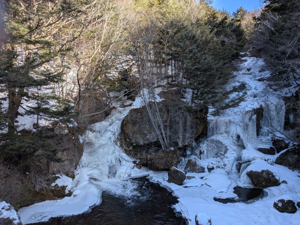 奥日光の季節のランドマークというか、竜頭の滝は、春のツツジや秋の紅葉の目安としてネットで紹介されること多いですが、ご覧のような状況です。彼の地が如何に寒いかわかる写真ですね。