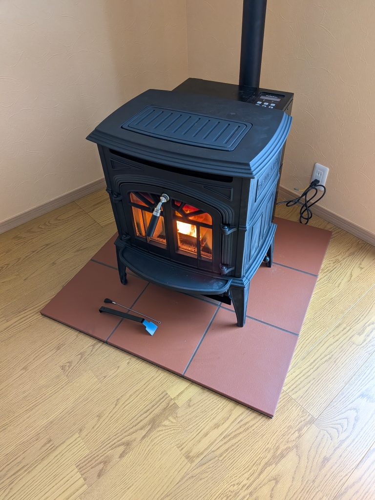 基本ペレットストーブは、遮熱壁も炉台も要らないので、結果的に数時間の作業と買った建材が無駄になってしまったのは少々申し訳なかった。
