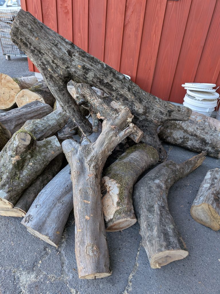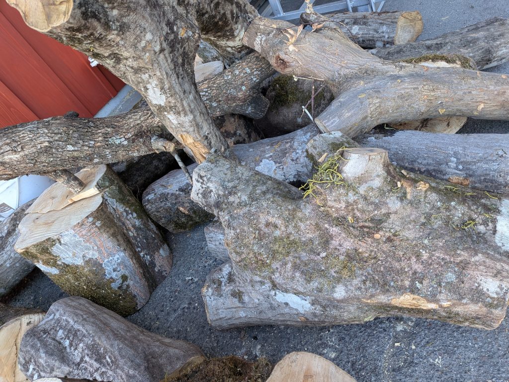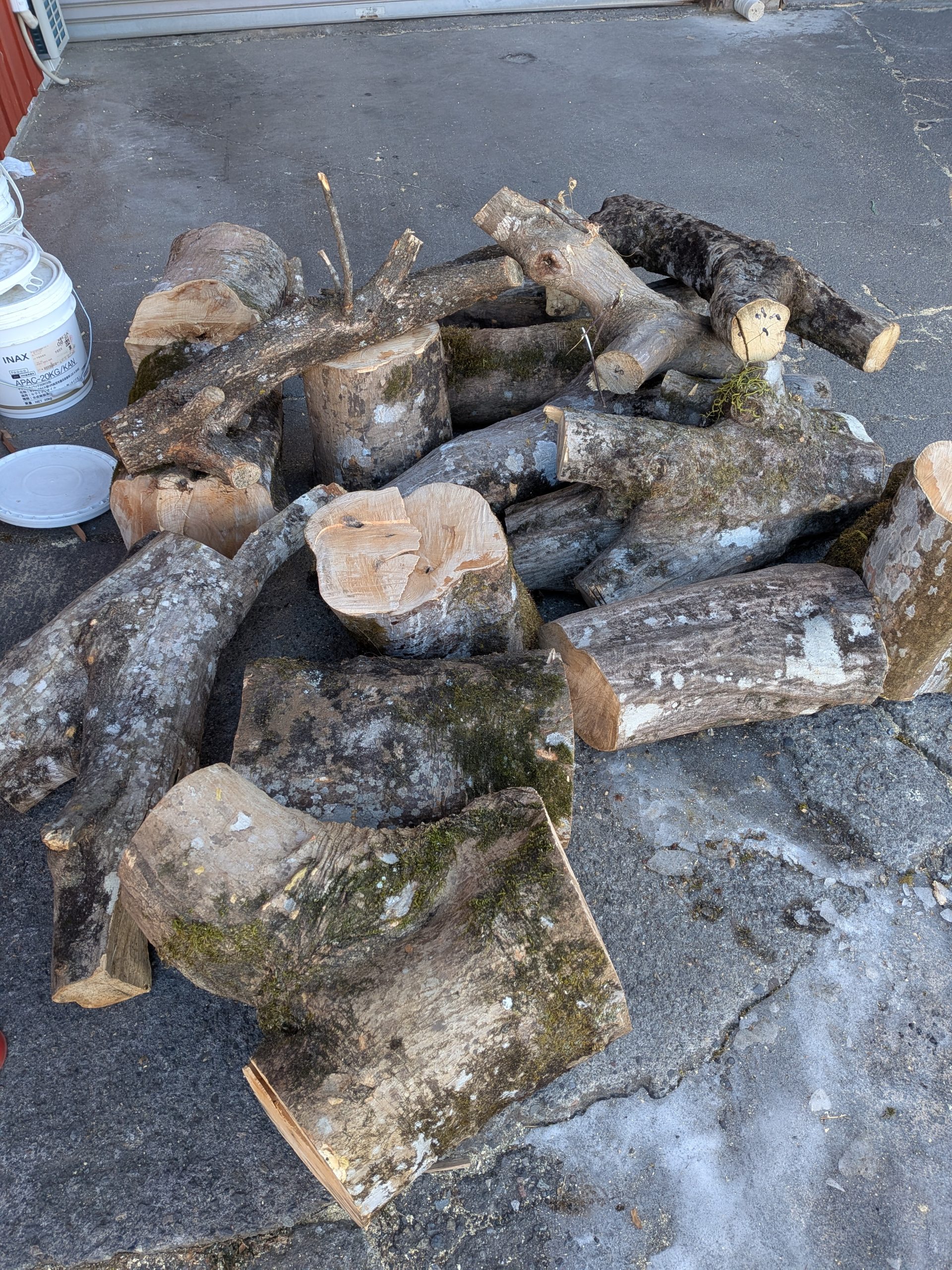 昨年別の方が持ち込まれたのは樫の木で、切り口がほとんど斜めであったので、薪としての見た目がイマイチだろうと、販売用というより自家用で買い取った。堅木中の堅木だから、薪としての評価は最上級の樹種だ。