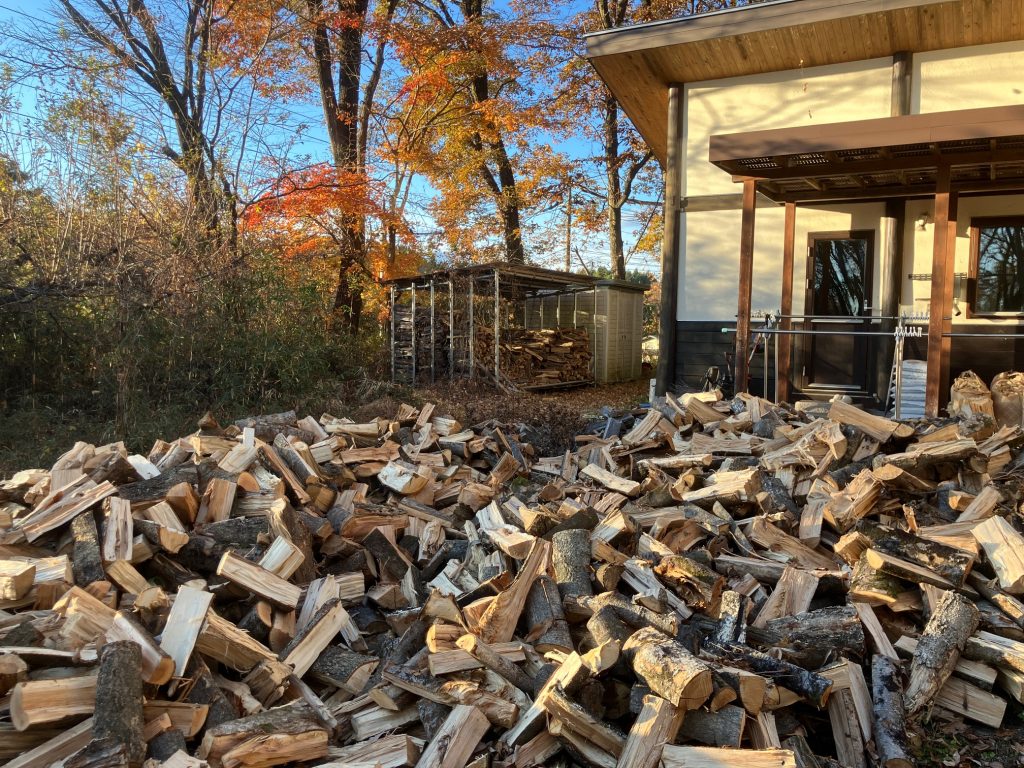 ただし「嬉しくも難しい」悲鳴といいますか? 使わなかったことで薪が余ってしまって・・・・・。この2年間の薪の消費量は3立米ほどです。そのうち半分くらいは、会社前で売っている「薪の自動販売機」での消費でして、3年乾燥の最上級の薪が沢山あるのです。(ただ外販するほどではないです)。