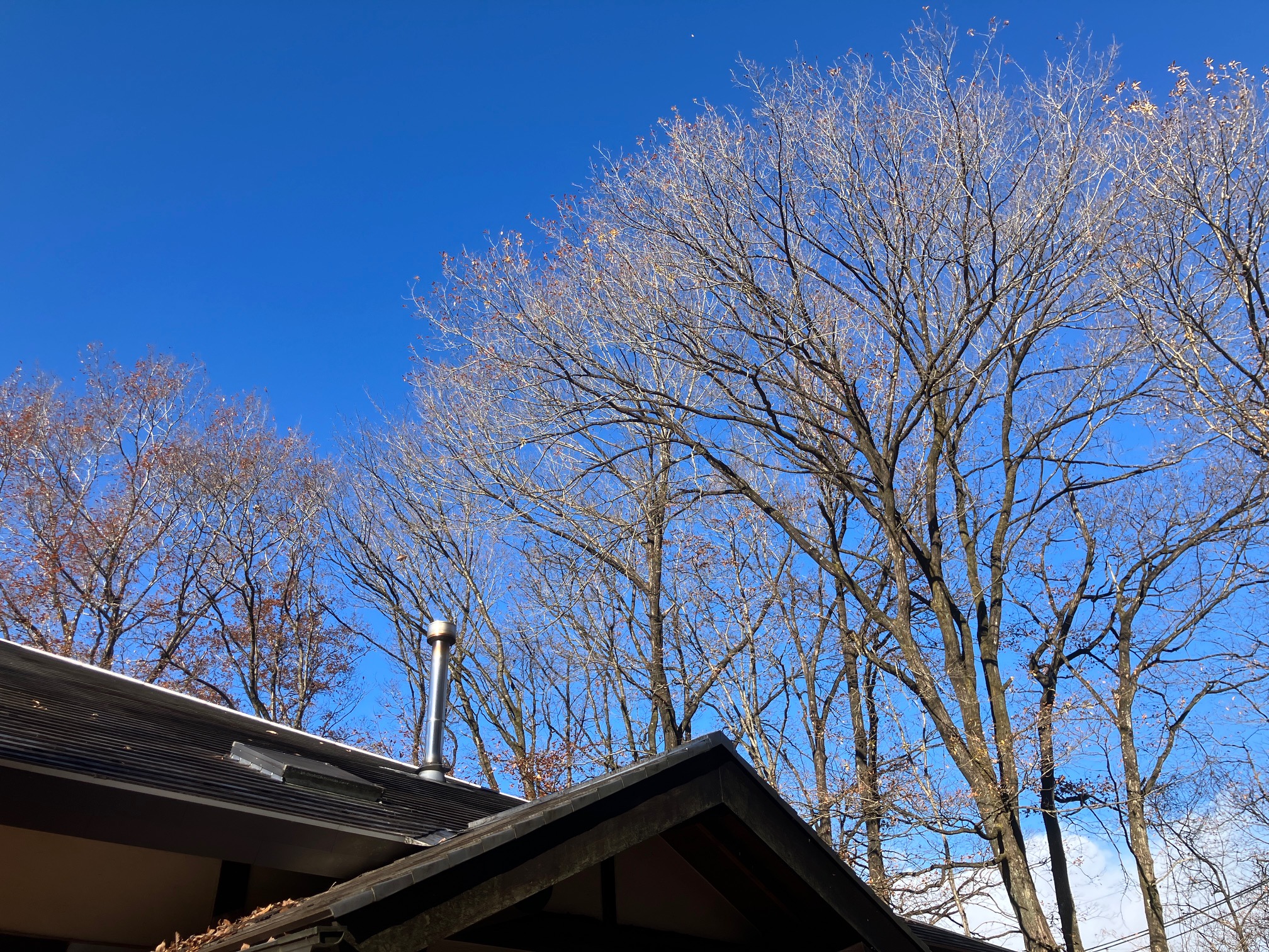 3年前に自宅周りの雑木を8本位浚いました。また同じ年に実家の裏山も切って、その時出たアカマツの巨木4本も薪にしまして、ストーブ屋としてのモニター実験と称して1シーズンアカマツだけでストーブを燃やしてみました。「ひと月に一回の頻度で煙突掃除が必要」という結果で、なるほど針葉樹、特に松は薪ストーブにむかない、ということが身をもってわかりました。