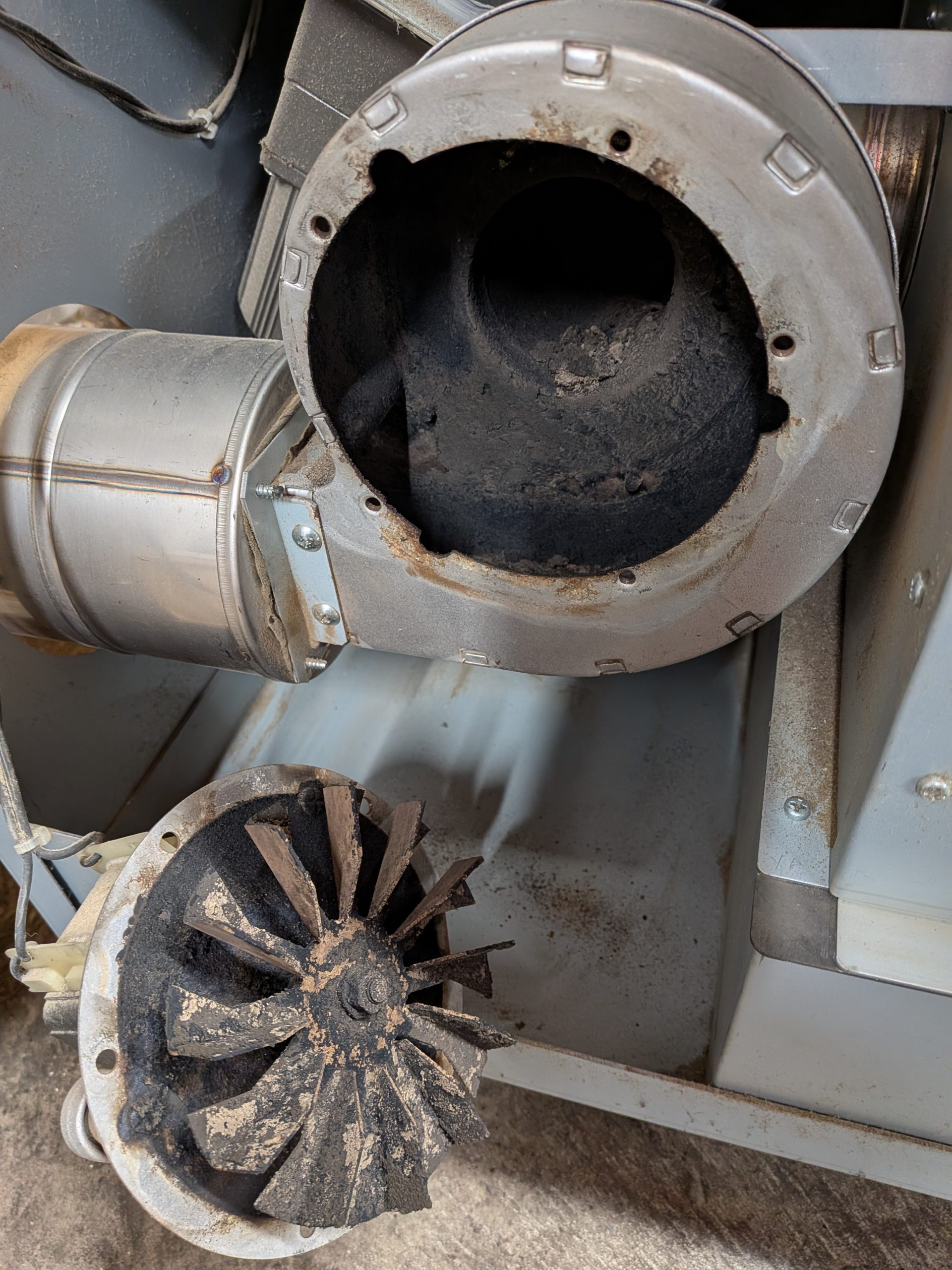 こうしたメンテンナンス不良の結果、燃焼ファンの羽根に煤が付着して、バランスが崩れファンユニットそのものの交換になってしまった場合もあります。