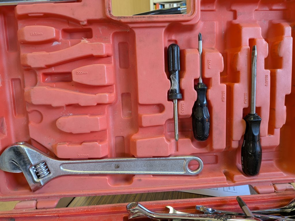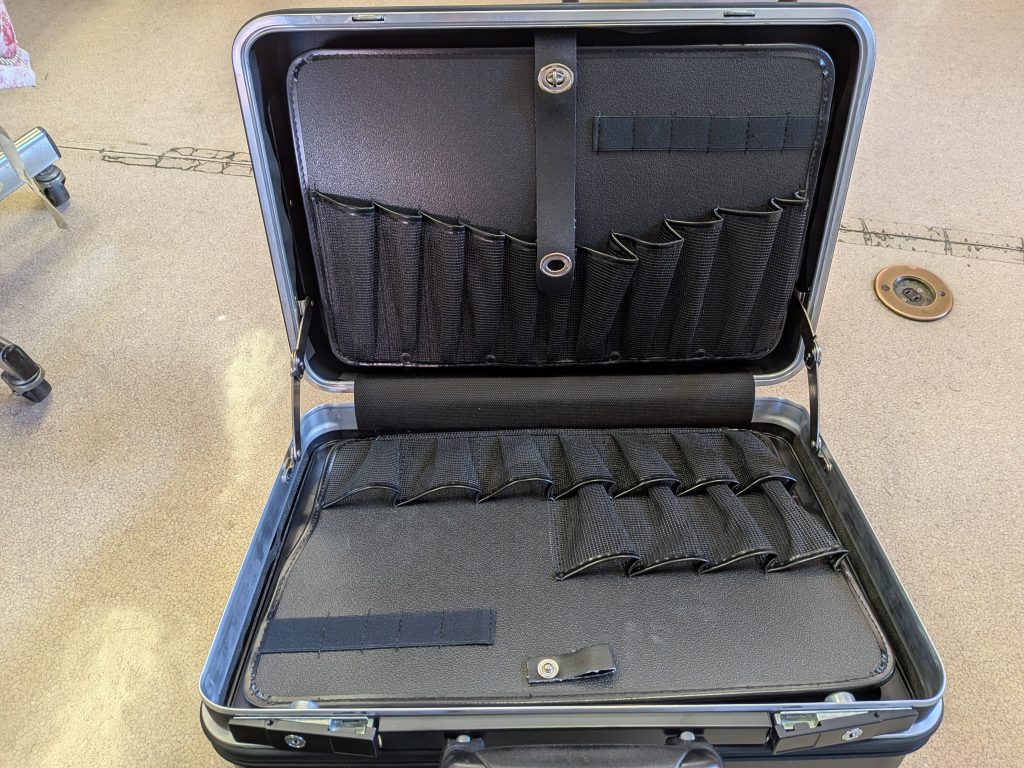 携行するたびにストレスなので、工具箱だけ新調することにした。ネットで調べていると薄いプラスティック製が多く、またすぐに壊れそうだ。米国製のなんかすごく丈夫そうなのが出てきたけど、ケースだけで10kg近くある。何が何でも重すぎるだろう。